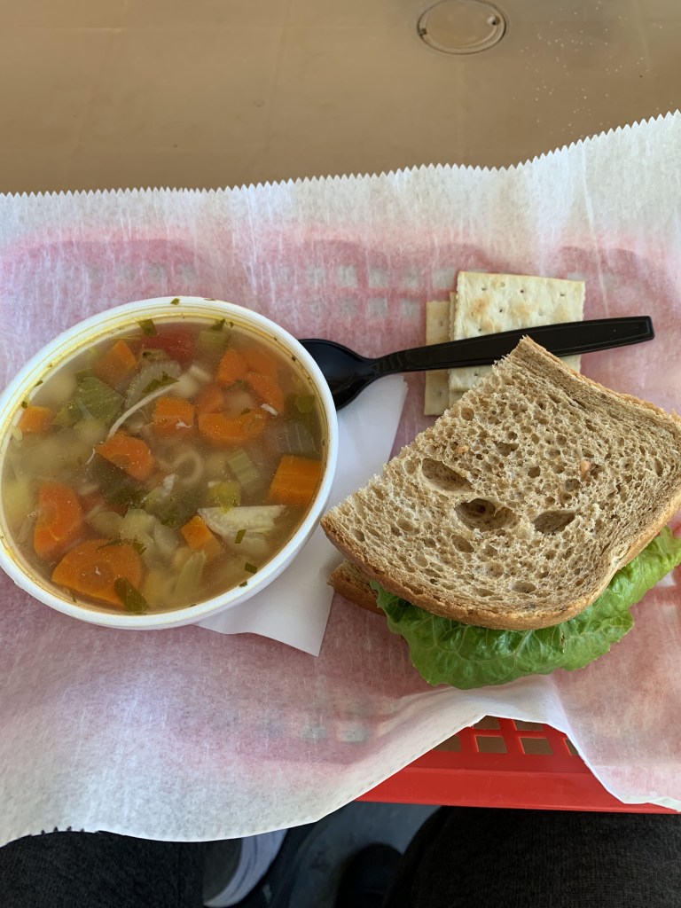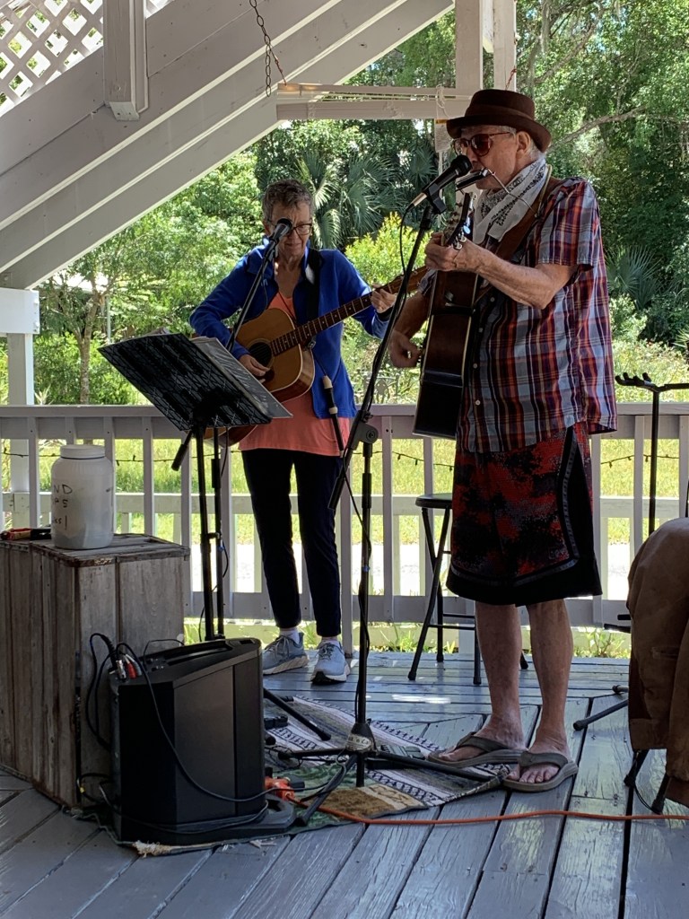 I wanted to sit down with an ice-cold glass of water, eat lunch, and enjoy something that was exactly what I thought it would be. Since Micanopy was nearby and I’d loved it when I visited, I headed in that direction. I returned to a small, local establishment with excellent food. I ordered the soup and sandwich combo, found a seat in the shade sporting a pleasant breeze, and relaxed to the local entertainment.
