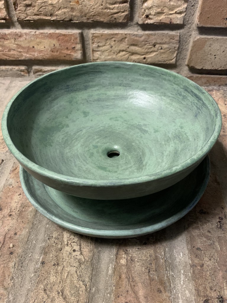 I had decided to create a simple bowl-shaped planter and saucer. Although the instructor let us mold, roll, and punch air pockets out of the clay, she wasn’t keen on giving us any wheel time. The most we were allowed to do was put a hand on the inside of the clay as she worked it so we could feel the shaping process. Then she did everything else. After that, we waited to hear our piece had been fired and was ready for pick-up. So much for learning pottery.